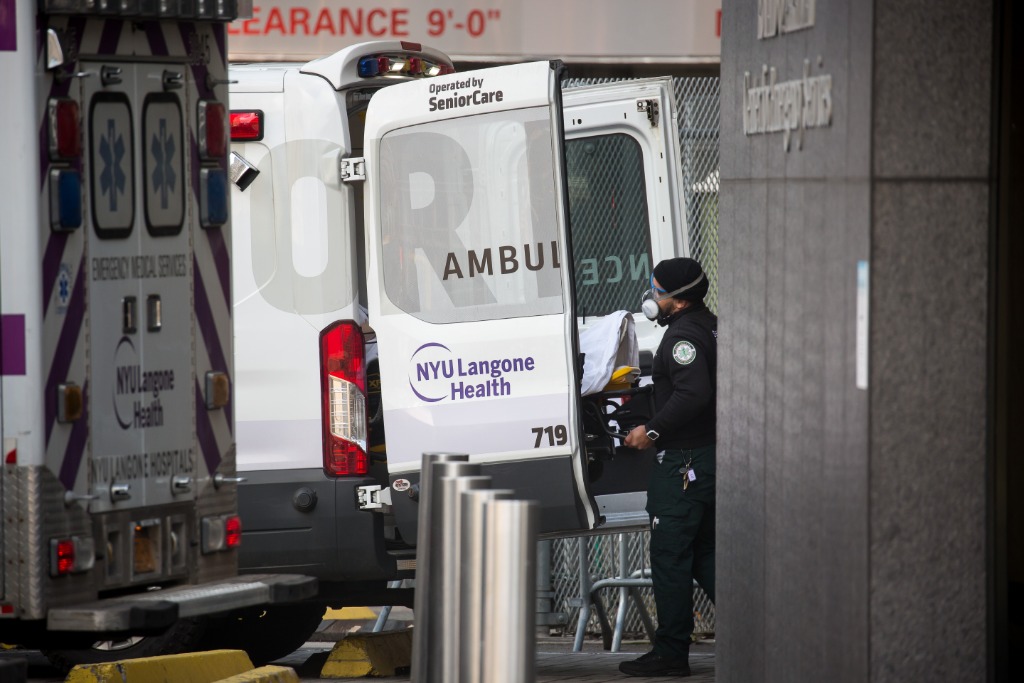 1月18日,在美国纽约一家医院外,一名患者被送上救护车。(新华社发,郭克摄)