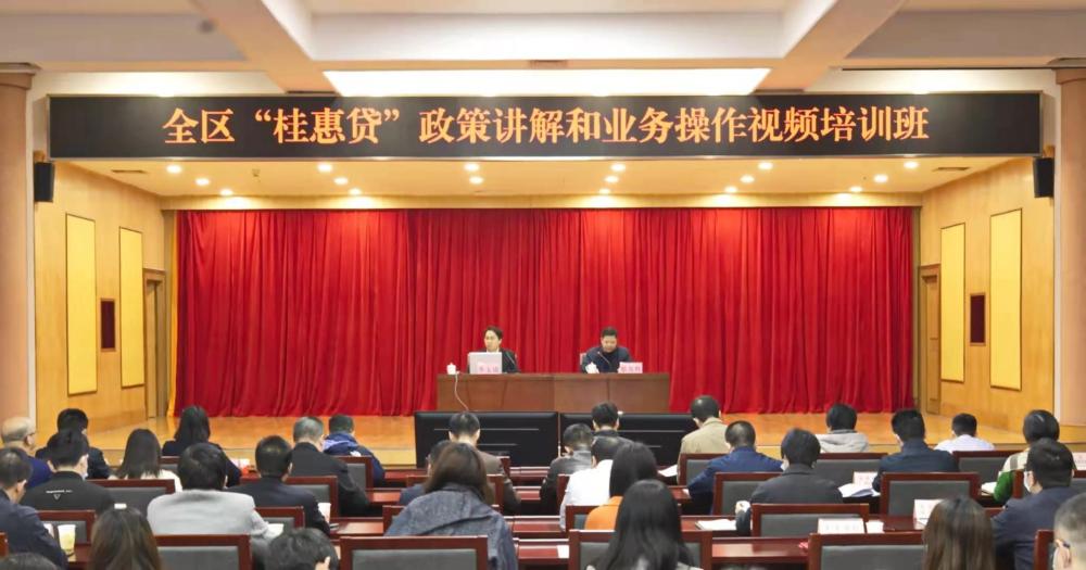 图为“桂惠贷”政策讲解和业务操作(视频)培训班现场