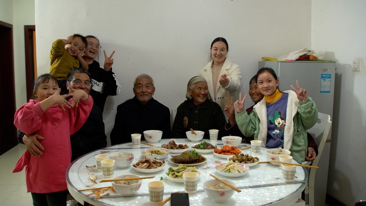 王学芹一家9口齐聚一堂,庆祝搬迁第六年。(新华社记者杨琳摄)
