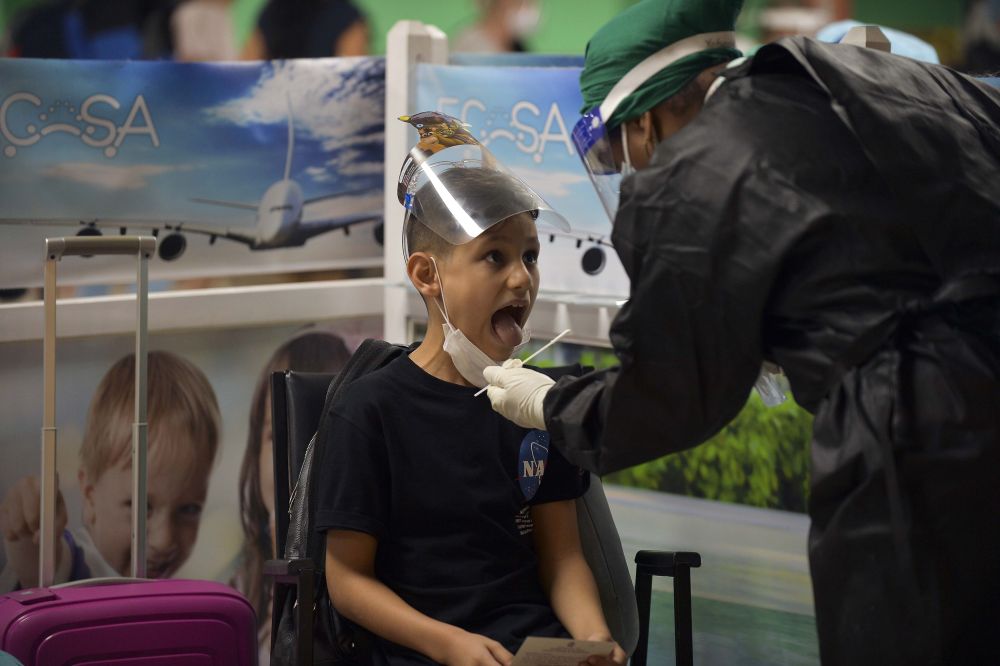 2020年11月15日,古巴首都哈瓦那何塞·马蒂国际机场工作人员为入境旅客采样以便进行核酸检测。(新华社发,亚米莱·拉赫摄)