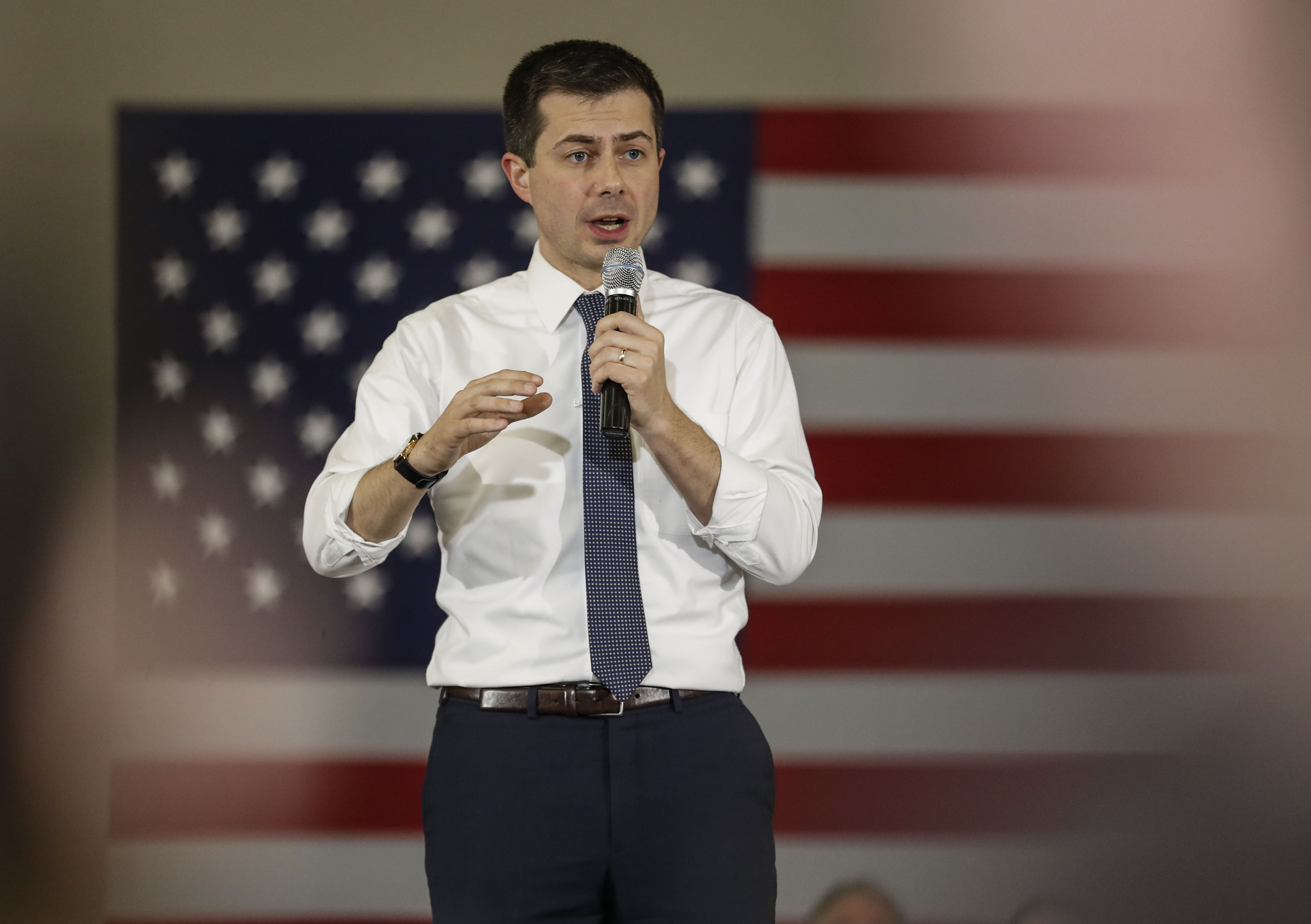 2020年2月1日,在美国艾奥瓦州锡达拉皮兹,美国民主党竞选人、印第安纳州南本德市前市长布蒂吉格在竞选活动上讲话。(新华社发,乔尔·莱纳摄)