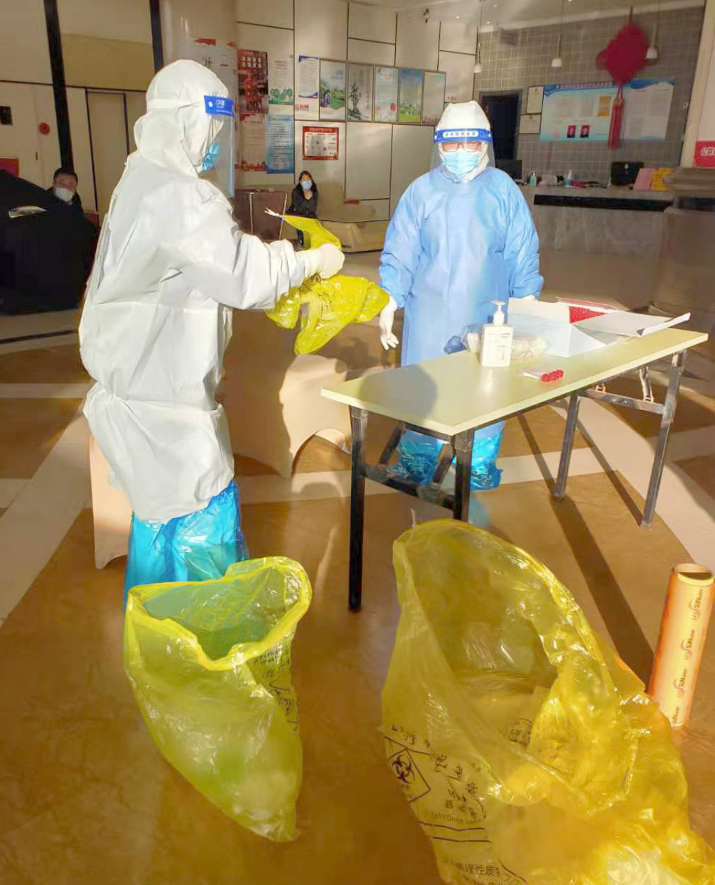 嫂子在位于石家庄的中铁三局医院工作。这次和同事一起,被抽调到隔离点,为被隔离的人员服务。
