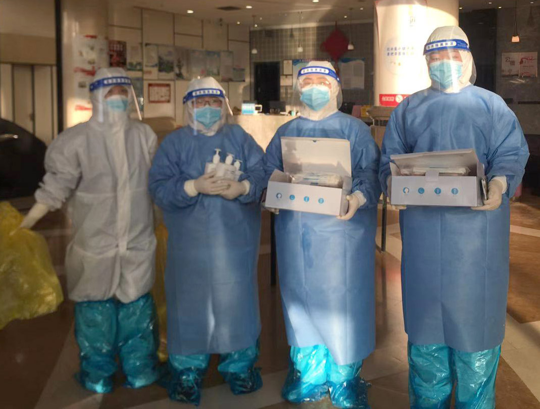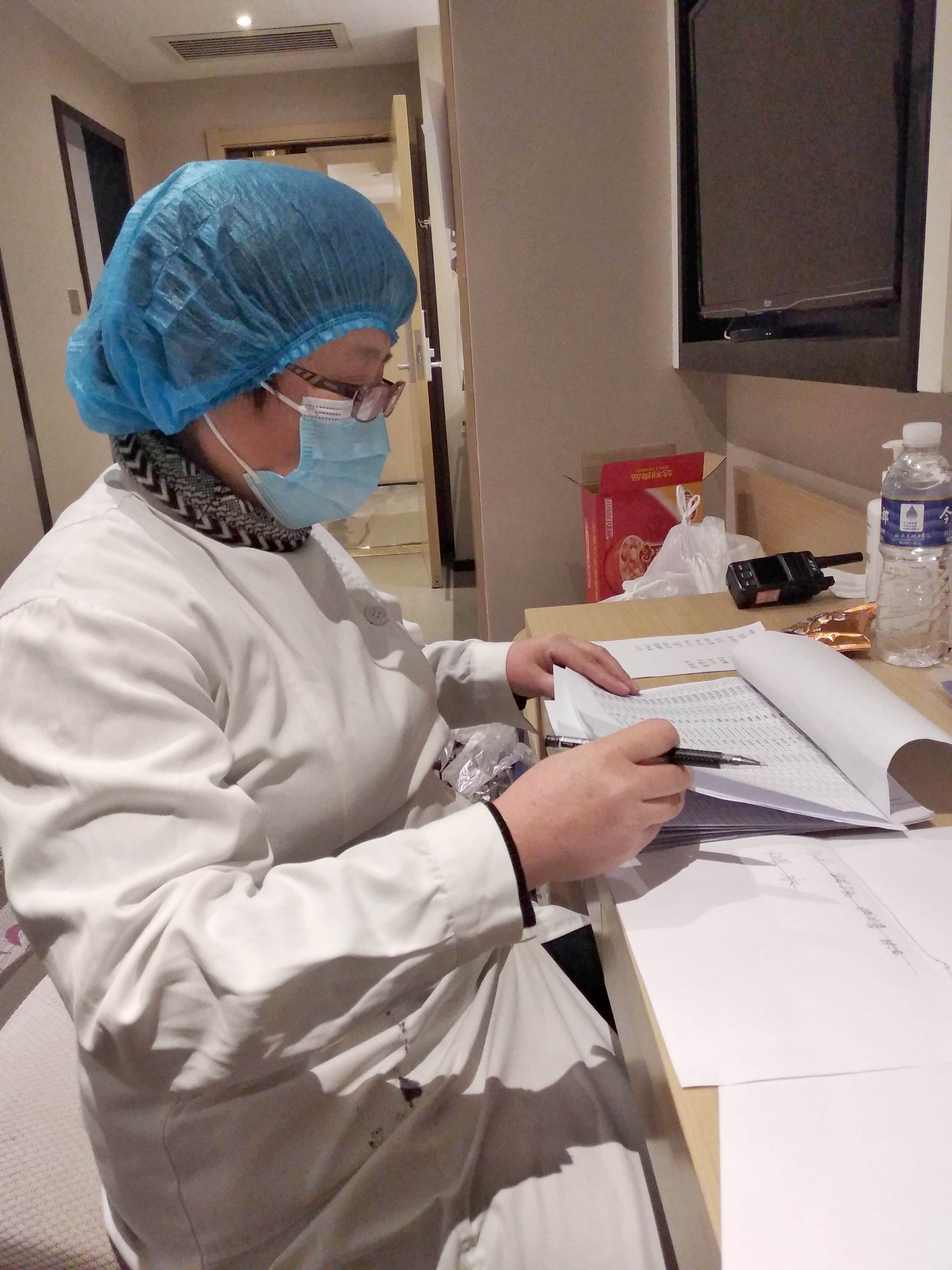 被隔离的人群里,有5个月大的婴儿,也有70多岁的老人,还有患高血压、糖尿病的病人。刚开始的时候,医生们要收拾房子,准备消毒液,准备各种物资,被隔离人员有什么需要都尽力满足,大家基本都是通宵干,连轴转。