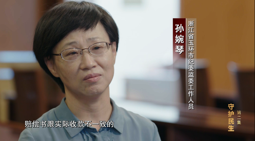 孙婉琴(浙江省玉环市纪委监委工作人员):赔偿书跟实际收款不一致的,这些都不符合规定的。民工的当事人和企业主不在当场调解,调解过程当中全部是吴福康一人,也不符合两个人以上参与调解的规定。