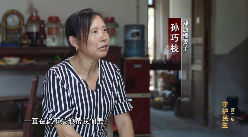 孙巧枝(郑通楼妻子):其实少了5万块钱,这个我们自己心里也有数,我也没有告他或者怎么样,我老公他那个人也是一个老实人,他人病得那个样子,一直在说不是他帮我们要,我们还要不过来,他是这个意思。