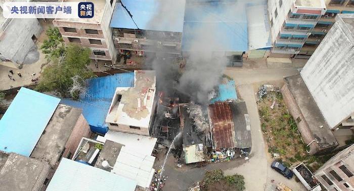 消防员赶到现场后发现,起火建筑为一层砖混结构建筑,总建筑面积60平方米,起火部位位于东面杂物房,火势迅速蔓延,屋顶已被烧穿。由于周边房屋间距较小,且堆放了大量木材等易燃可燃材料,民房内的液化气罐犹如不定时炸弹,一旦发生爆炸或者火势失控蔓延,将严重威胁着周边群众的生命财产安全。