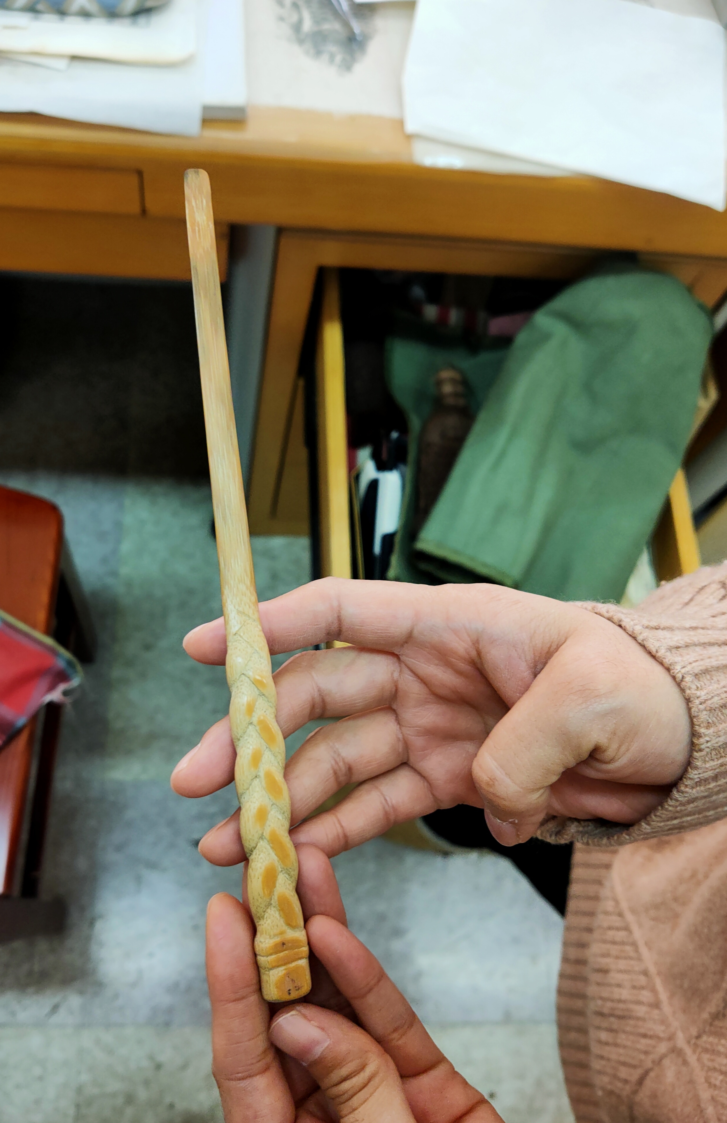 这是山东省图书馆古籍修复团队专用竹制起子,便于安全分离粘连书页。(新华社记者萧海川摄)