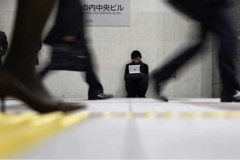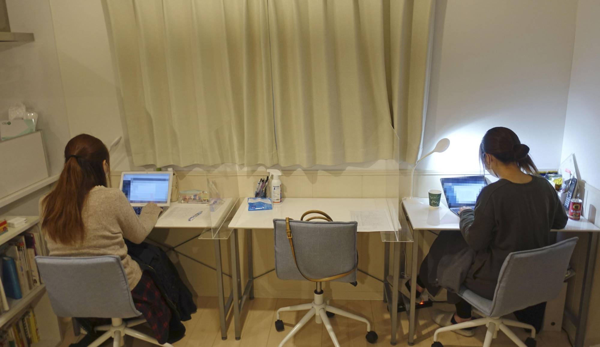 △东京一家公益组织的工作人员会向寻求帮助的人提供在线建议(图片来自Japan Times)