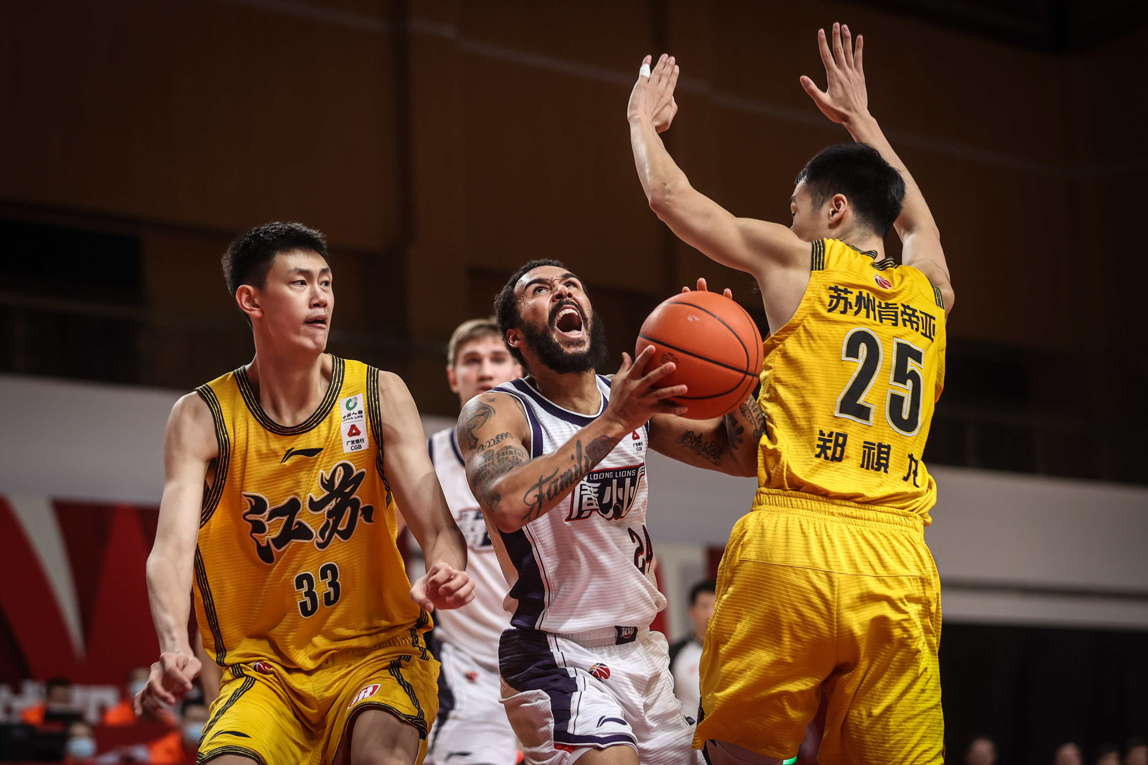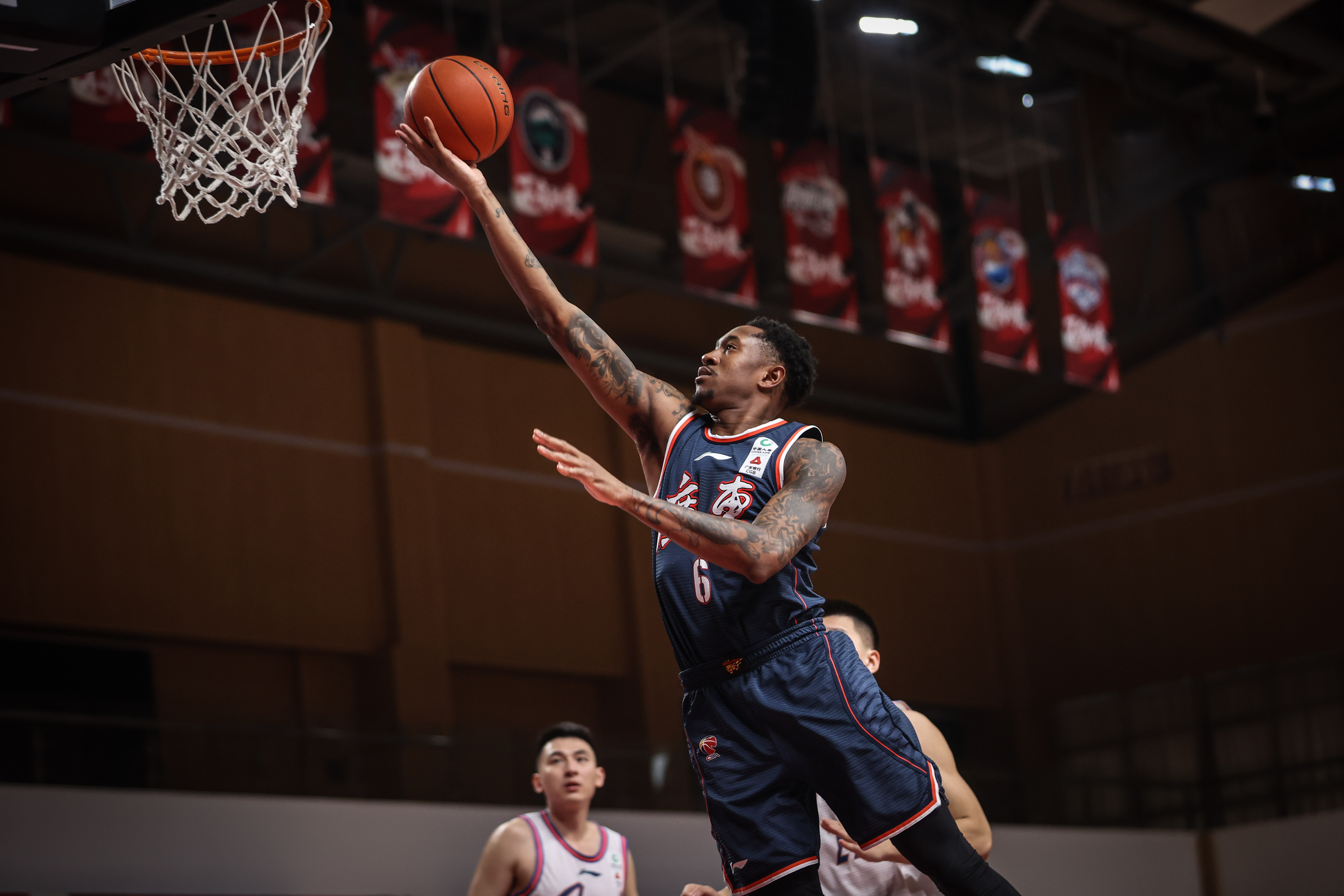 广州队球员摩尔(前中)在比赛中上篮。新华社记者潘昱龙摄