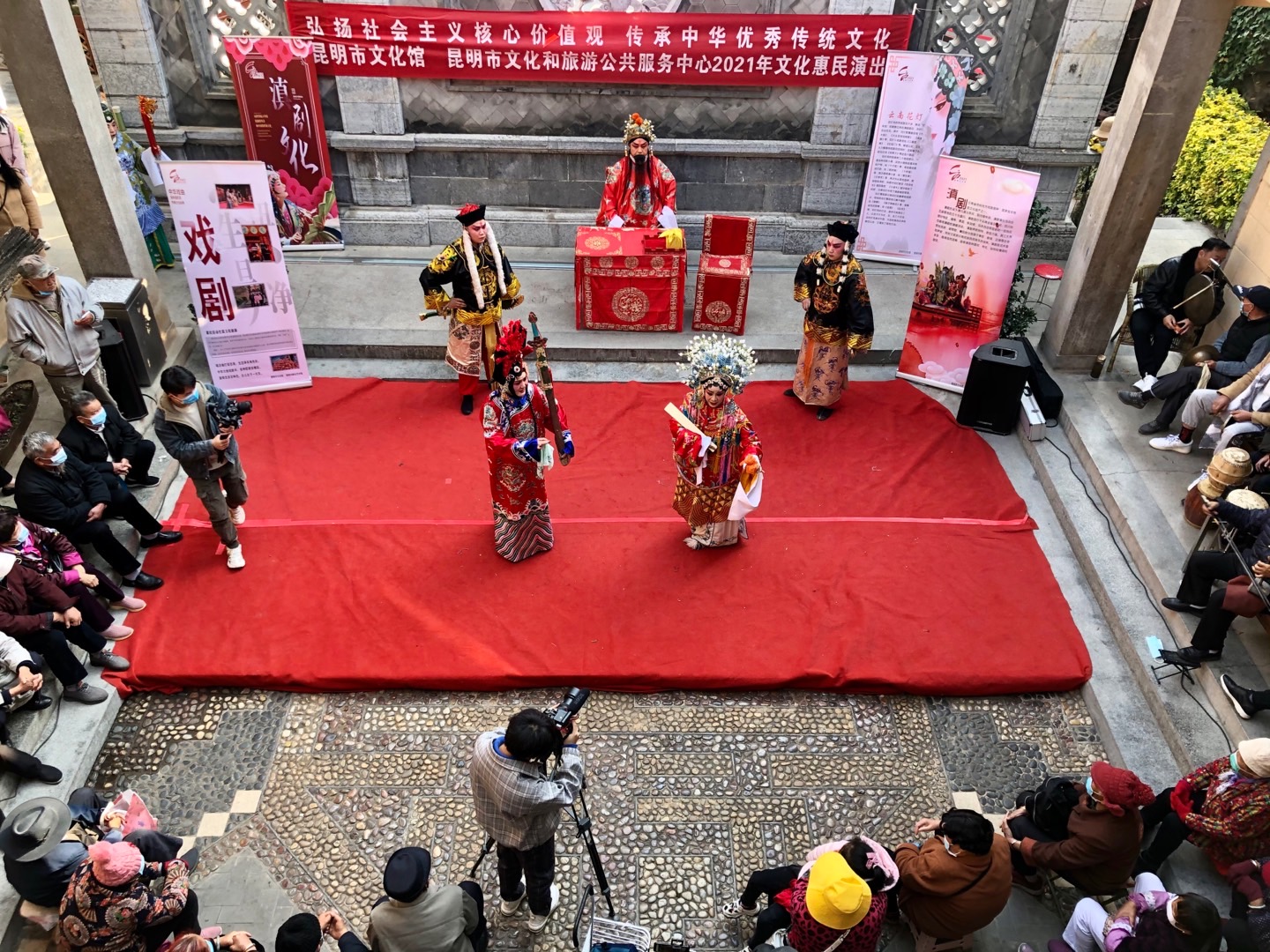 昆明市文化和旅游公共服务中心位于昆明老街,在原有旅游公共服务功能的基础上,融合非物质文化遗产推介等功能于一体,为市民提供全面的公共文化服务。其中,以滇剧和花灯戏为代表的常态化惠民演出,颇受市民欢迎。