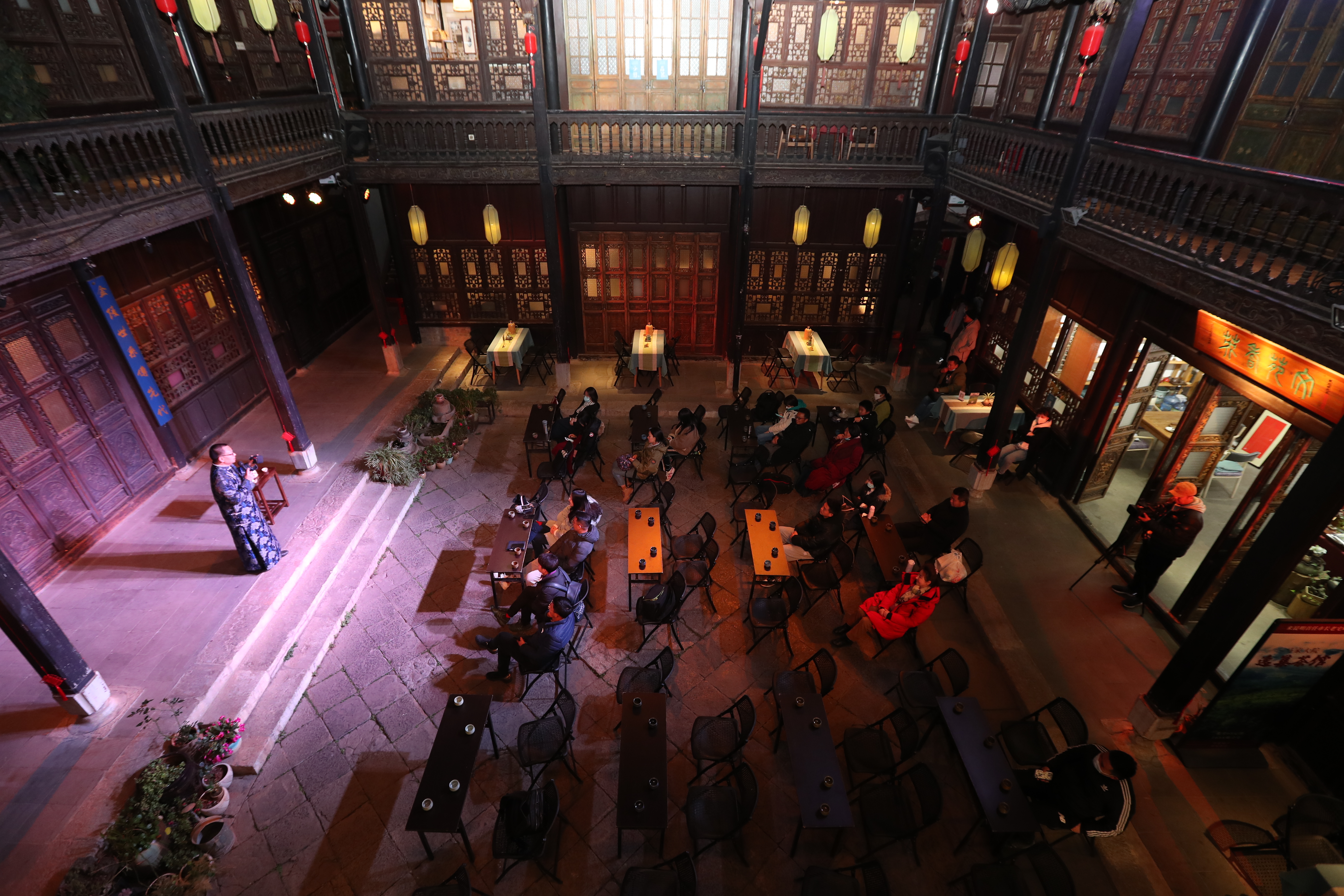 1月18日,市民正在昆明老街的庭院内观看滇剧。李秋明摄