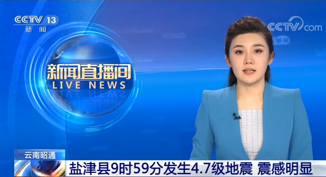 震源深度10千米!云南昭通市盐津县发生4.7级地震