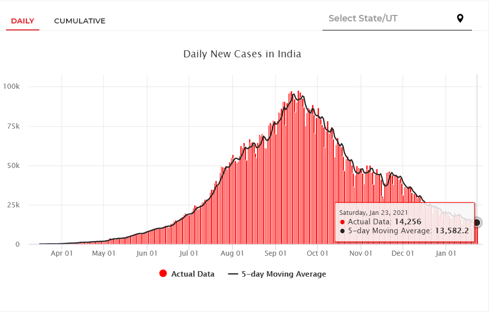 据印度卫生部当地时间23日8时消息,过去24小时印度新增新冠肺炎确诊病例14256例,累计确诊10639684例;新增死亡病例152例,累计死亡153184例;现存确诊病例减少3026例,降至185662例;累计治愈出院10300838例。