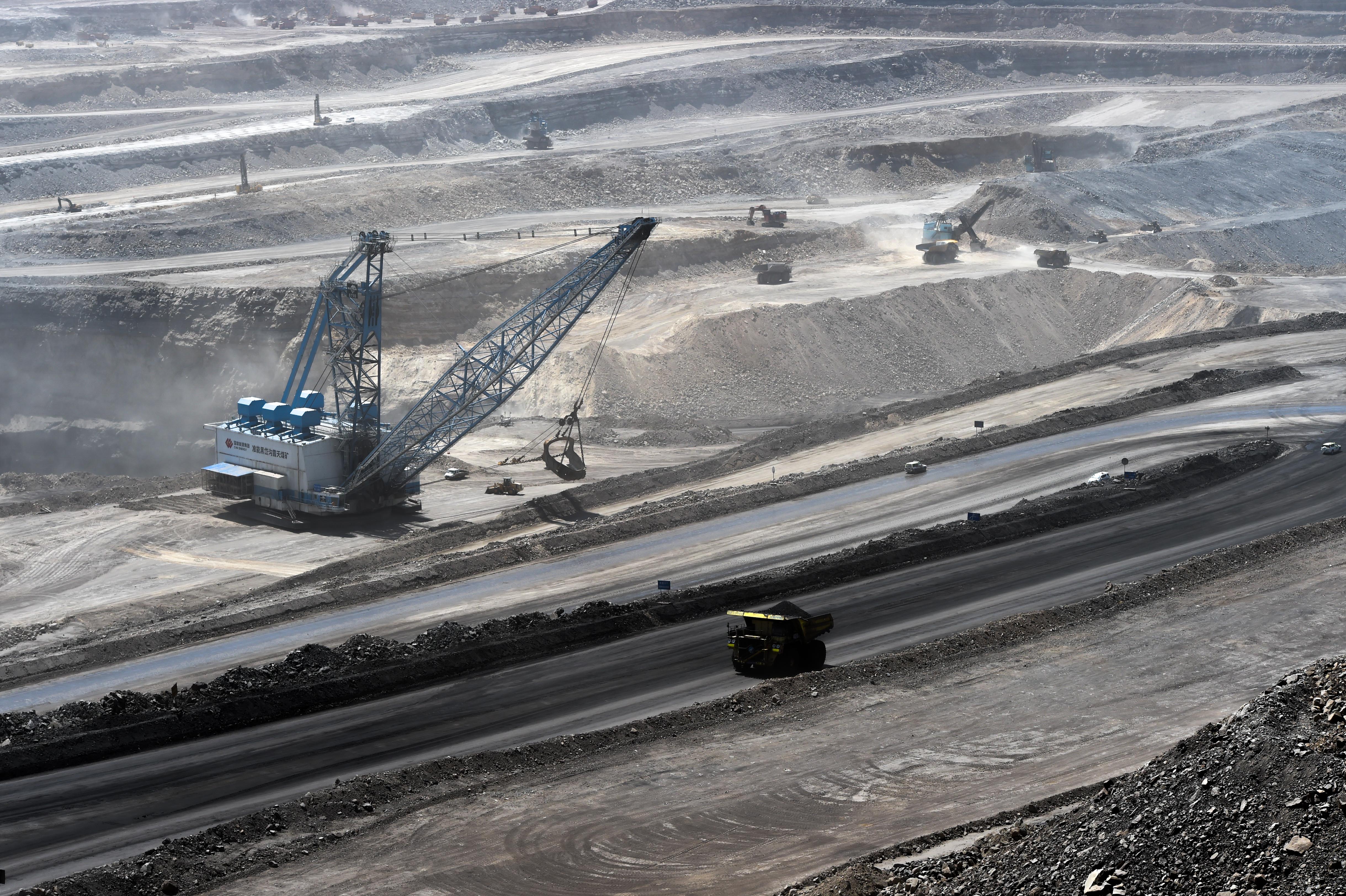 2020年5月3日,大型运输设备在内蒙古西部一处露天煤田行驶。2020年内蒙古以雷霆手段对涉煤腐败“倒查20年”。新华社记者 连振 摄