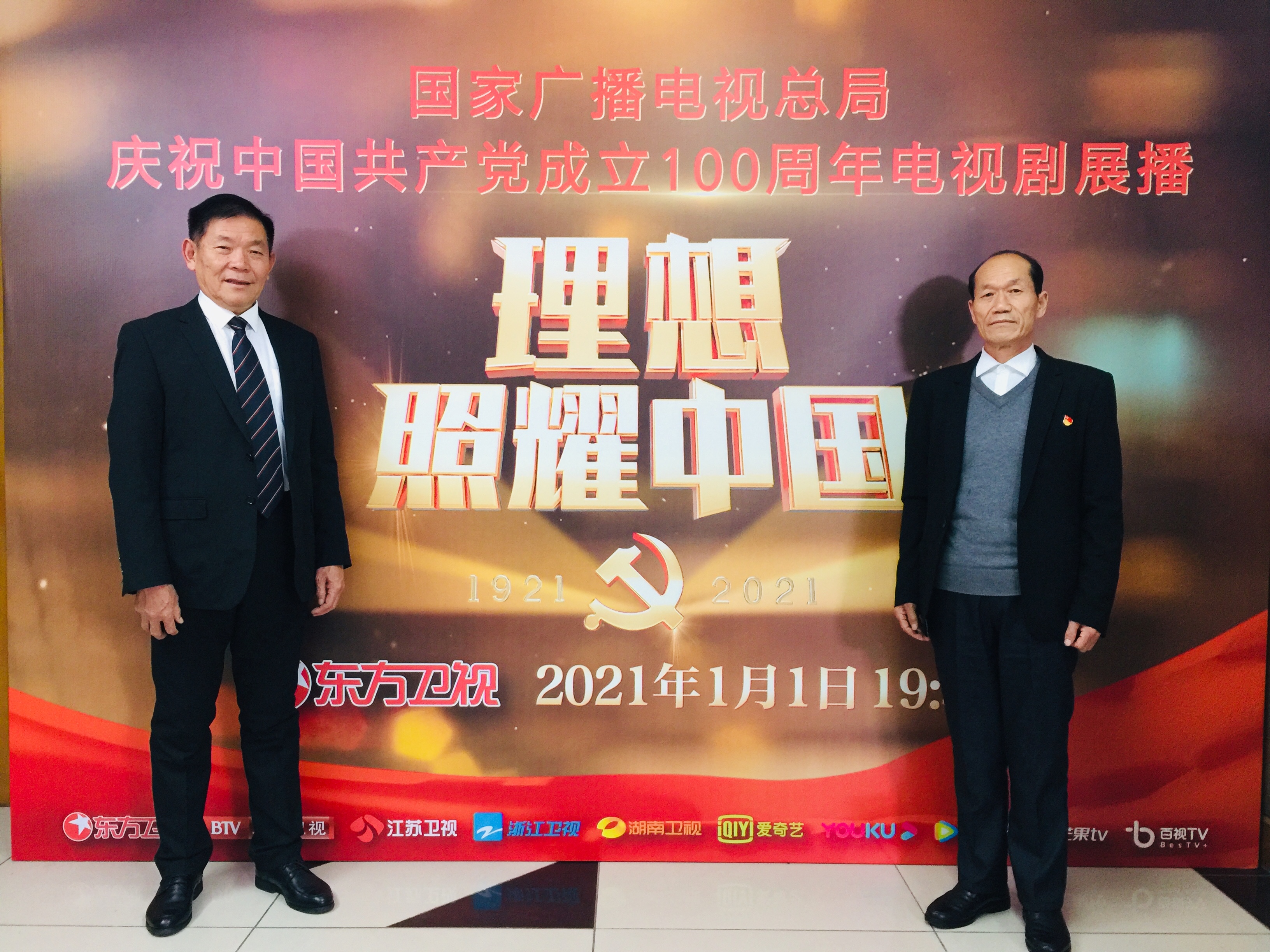 谢兴昌(右)受邀参加电视剧《山海情》的展映活动(受访者供图)