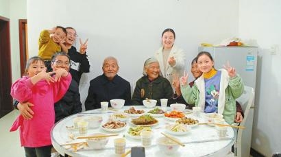 “祝咱家日子像芝麻开花节节高!”近日,老王一家9口第一次齐聚一堂,举起酒杯,庆祝搬迁第六年。2016年秋收结束,王学芹家从黄河边的破瓦房,搬进了封丘县李庄镇移民社区的电梯楼,成为河南省第一批黄河滩区搬迁户。从那以后,每年全家人团聚的第一顿饭,都成了王家人固定的“庆祝宴”。