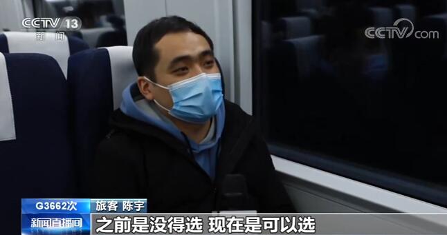 旅客 陈宇:原来是10个小时左右,现在是不到4个小时,之前(周末)回家的话,可能时间上来不及。如果像现在时间短了,可能回家的次数会多一点,选择性会更多一点,之前是没得选,现在是可以选。