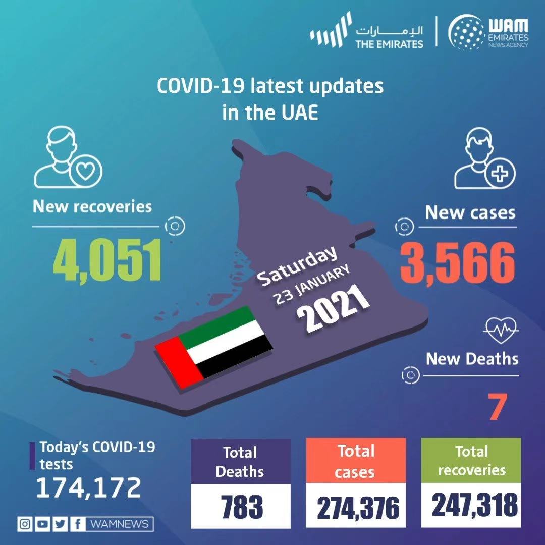 据悉,1月23日当天新增病例是在过去24小时内进一步对17.4多万人进行检测后公布的确诊病例。截至目前,阿联酋总共进行了超过2420万次的新冠病毒检测。