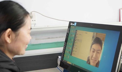 1月23日,在临西县第一中学负责的隔离点内,心理咨询师正在通过视频与被隔离学生交流谈心(受访者供图)