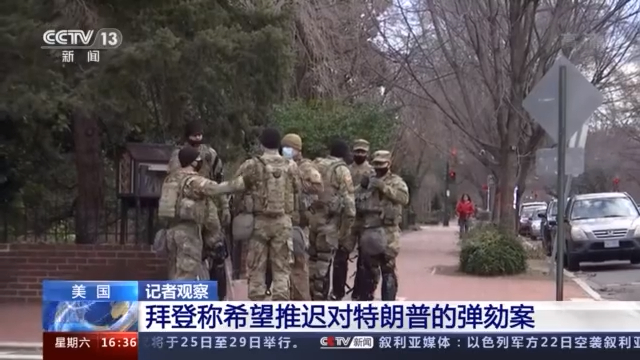 在美国国会,由于对前总统特朗普的弹劾案预计到2月才要开始审理听证。当地时间22日晚间,华盛顿政府与国防部达成共识,继续会有部分国民警卫队部署在华盛顿特区内,以预防弹劾案过程中出现突发情况。