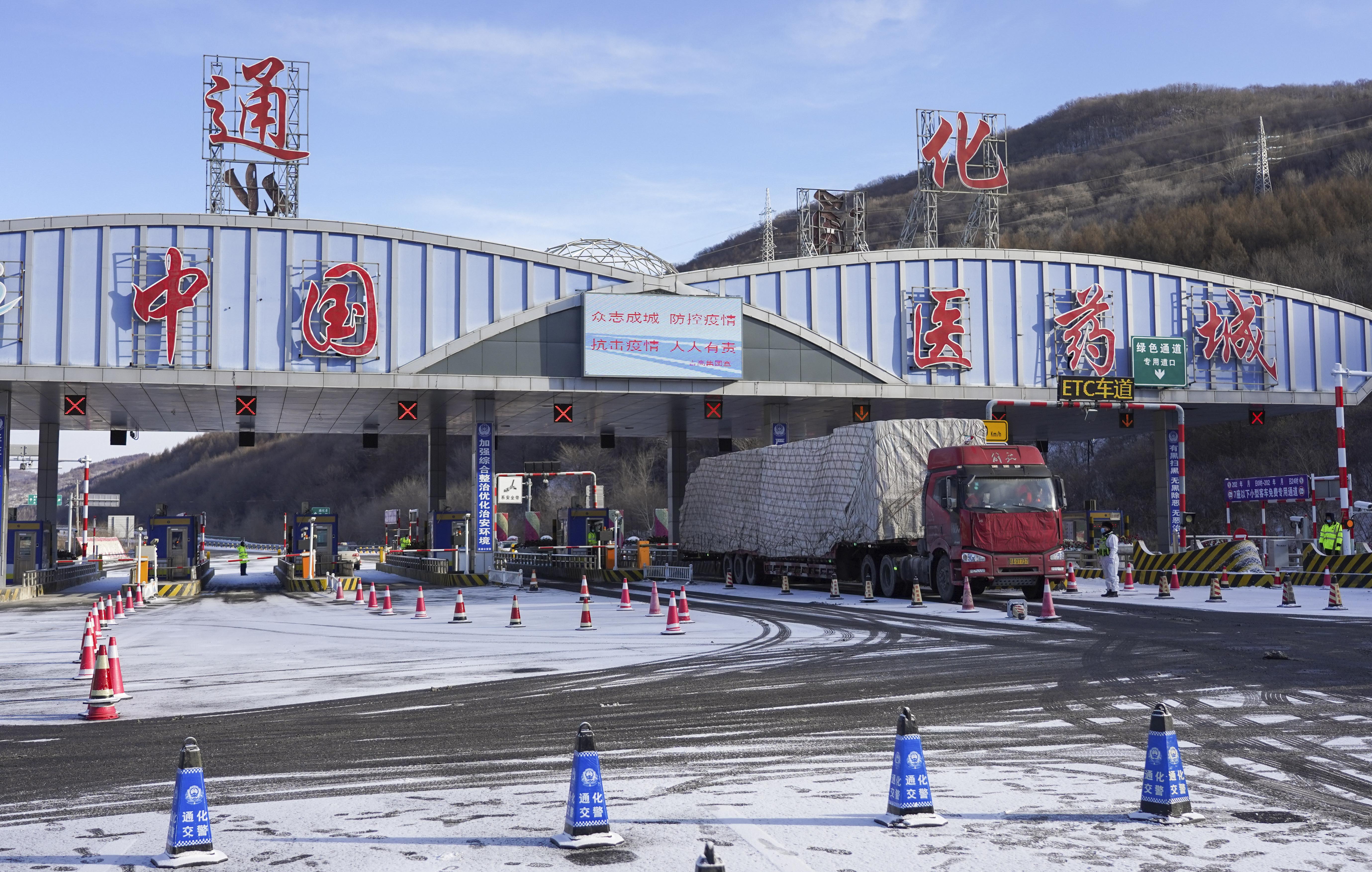 1月18日,防疫人员在通化市高速口对入城车辆、人员进行登记。当日,吉林省通化市对市区进行“提级防控”管理,对不同风险区域分别采取不同措施进行精准防控。城内小区实施严格全封闭,散居楼设围栏封闭,各类聚会全部停止。新华社记者 许畅 摄