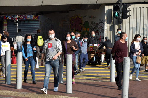 1月23日,香港市民佩戴口罩出行。新华社记者 卢炳辉 摄