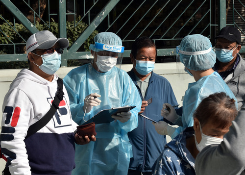 1月23日,医务人员在元朗检测站为市民登记核酸检测。新华社记者 卢炳辉 摄