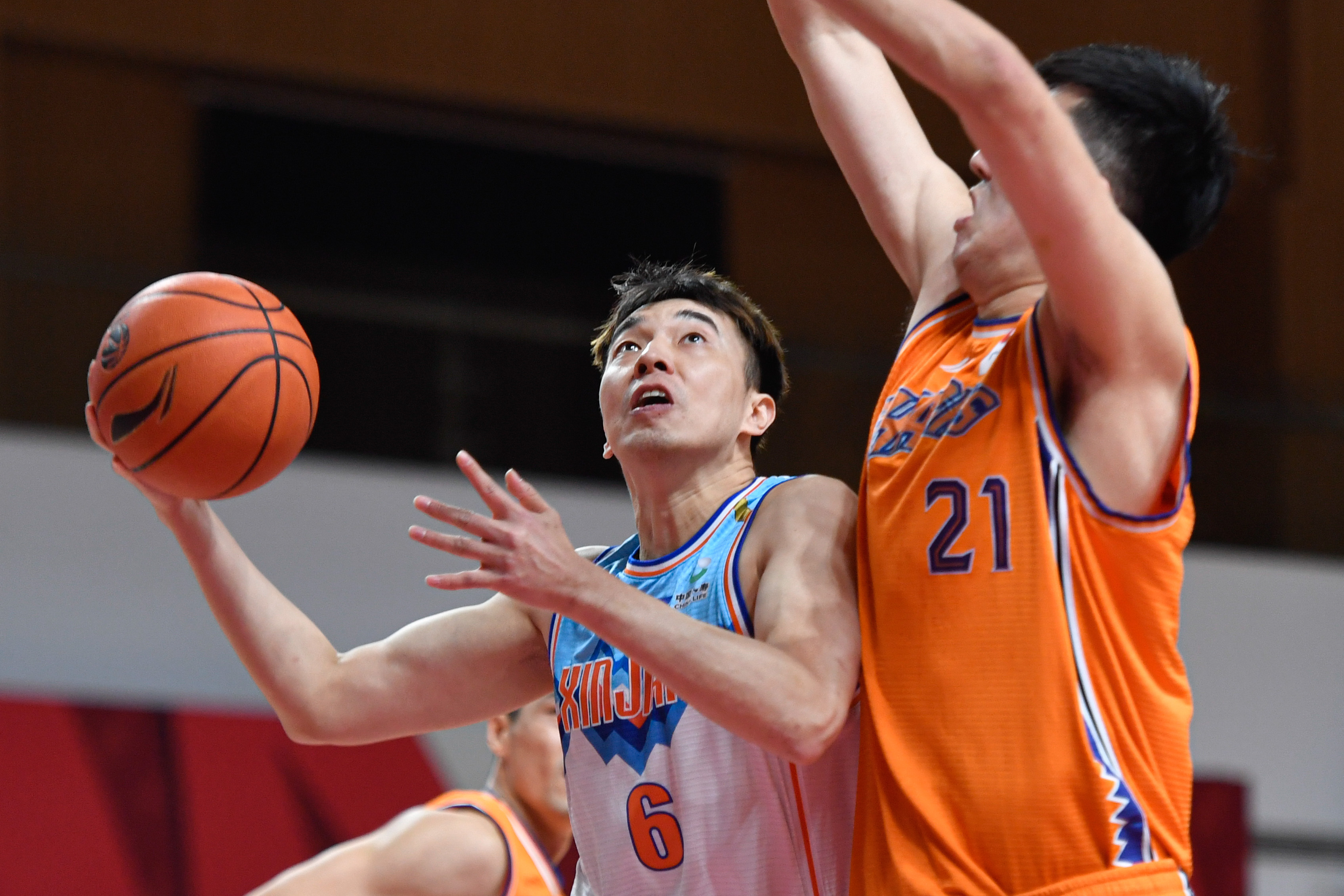新疆队球员曾令旭(左)在比赛中上篮。新华社记者黄宗治摄