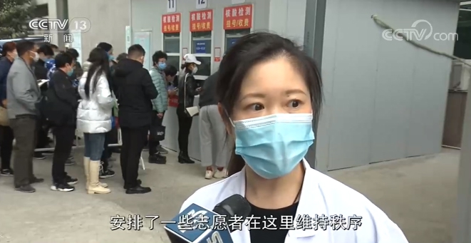 上海市闵行区中心医院门急诊办公室副主任 孙蝶:今天(1月21日)前来做核酸检测人是比较多的,以往这个时间点(早8点)大概有100到200人。现在目测估计是200到300人。所以我们加开窗口,加派人员,安排了一些志愿者在这里维持秩序。