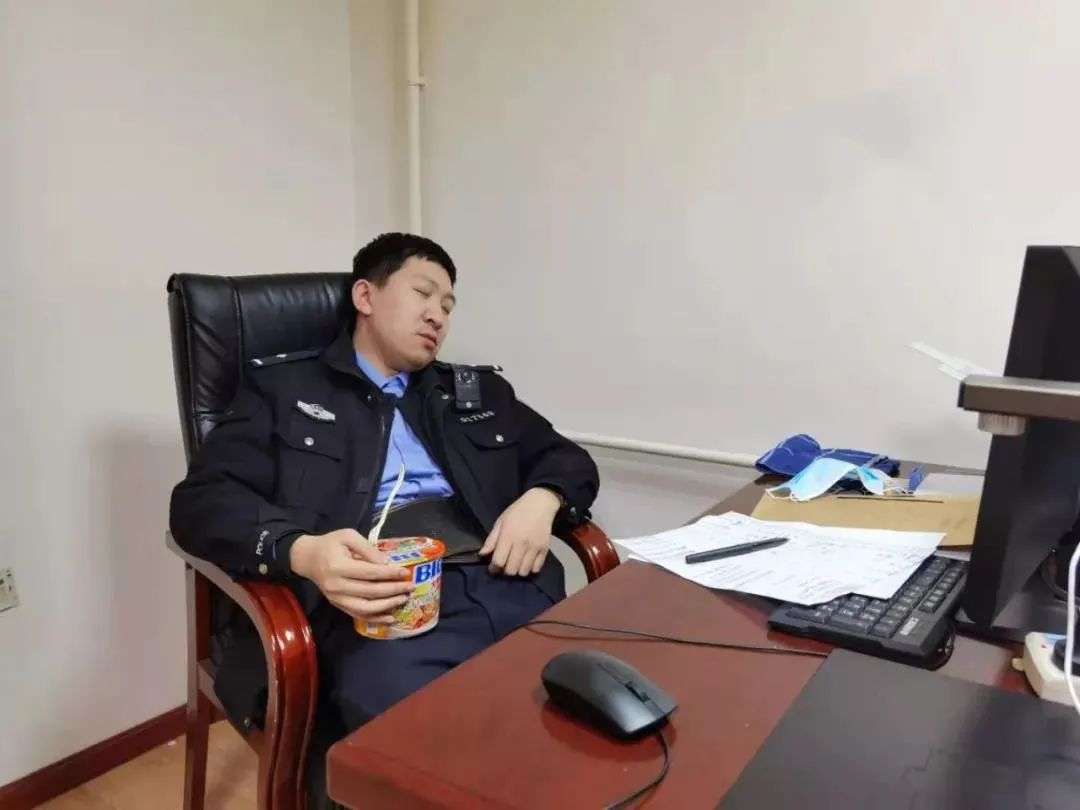 心疼!因疫情防控连续奋战在一线,哈尔滨南岗区王岗派出所民警孙超抱着泡好的面睡着了。