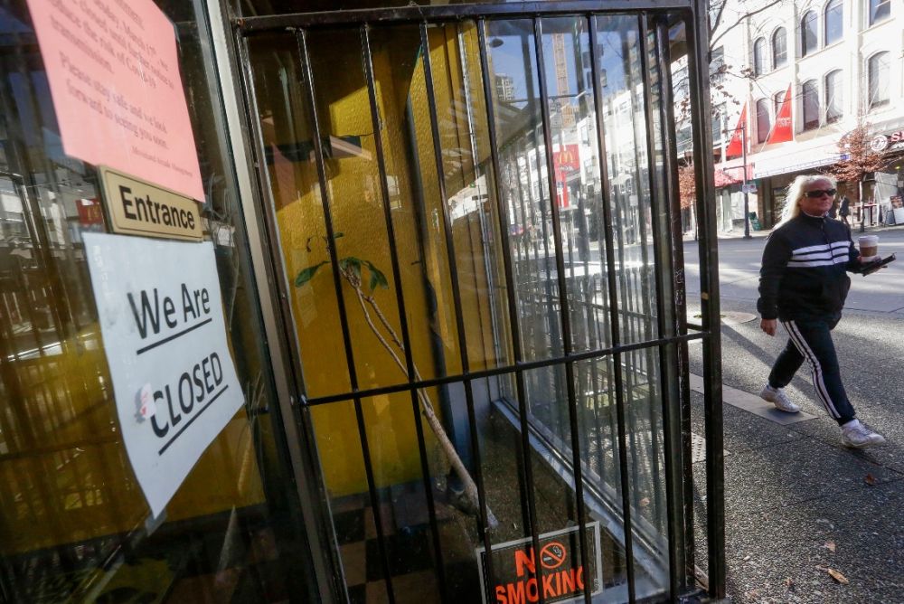 1月22日,一名行人从加拿大温哥华一家关门的商店前走过。新华社发(梁森摄)
