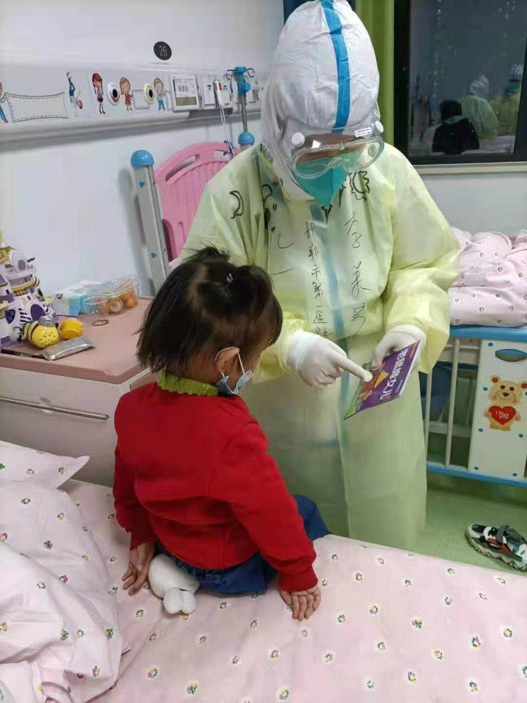 在我的眼里,我感觉自己只是做了每一个值班护士该做的工作:仔细记录孩子体温多少,胃口怎么样,吃了什么,有没有拉肚子,然后,就是只要有时间就和孩子们聊聊天!但是被纯真可爱的孩子比作“大白妈妈”的时候,我的眼泪还是泛滥而来!希望疫情赶紧过去!