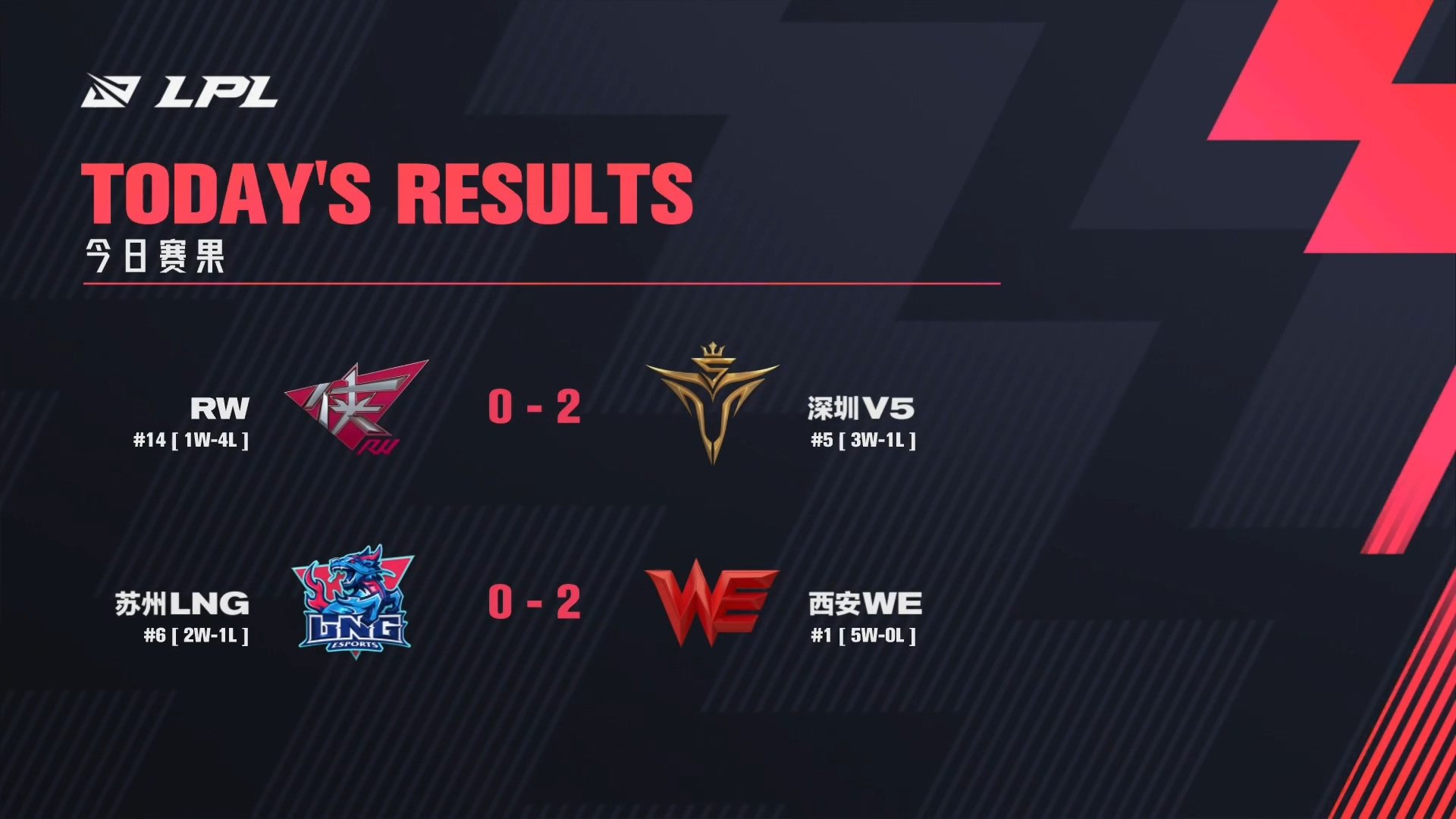 当日的另外一场比赛中,V5战队2:0战胜RW战队,以一波三连胜上升至积分榜第五名。
