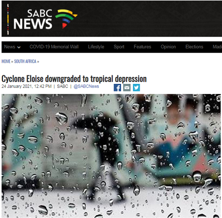 当地时间1月24日据南非国家广播公司报道,热带气旋埃洛伊塞(Eloise)登陆莫桑比克后已降级成热带低压(热带气旋强度最弱的级别)。