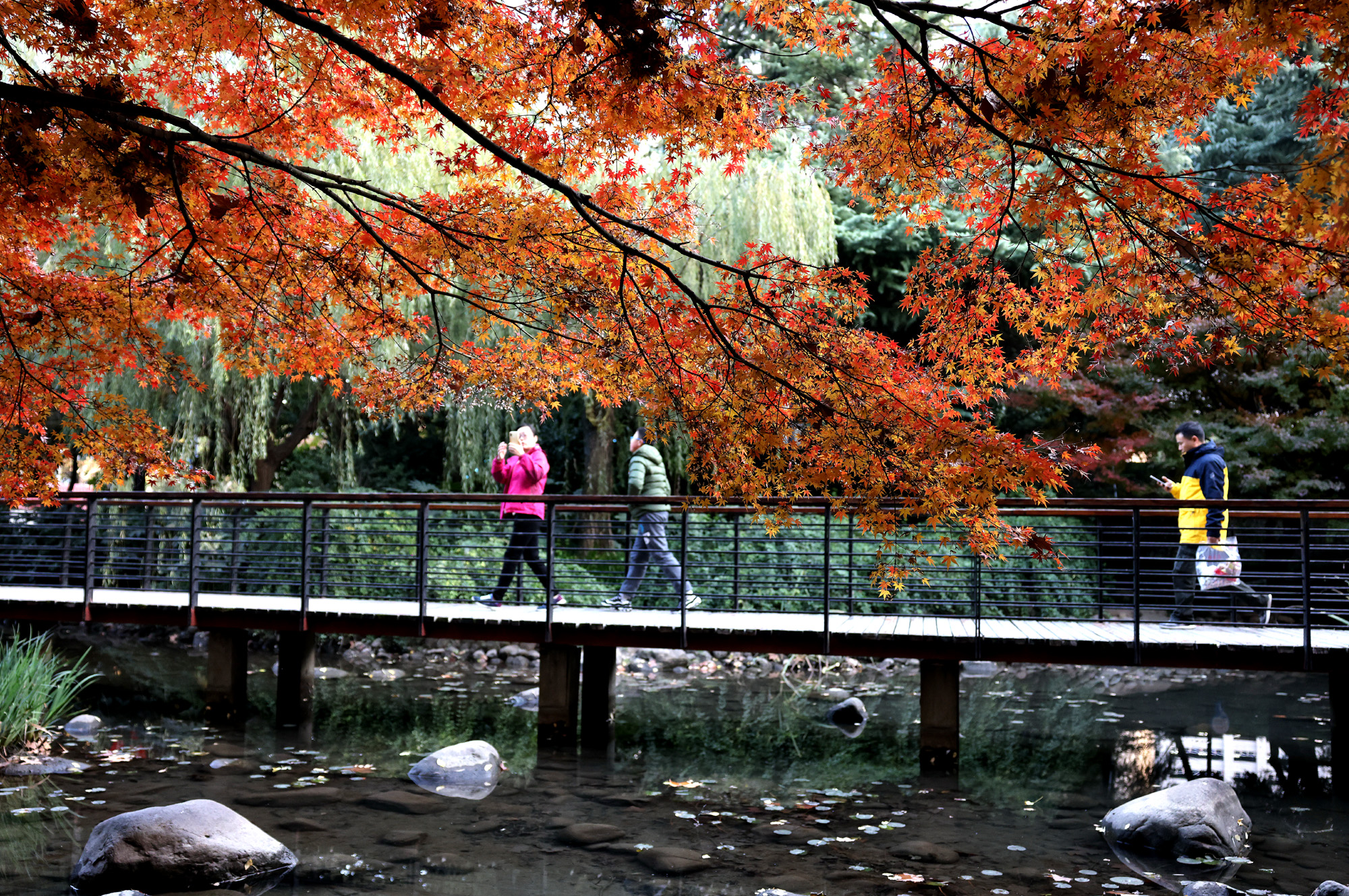 初冬时节,游人在上海市延中绿地游玩。新华社记者 陈飞 摄