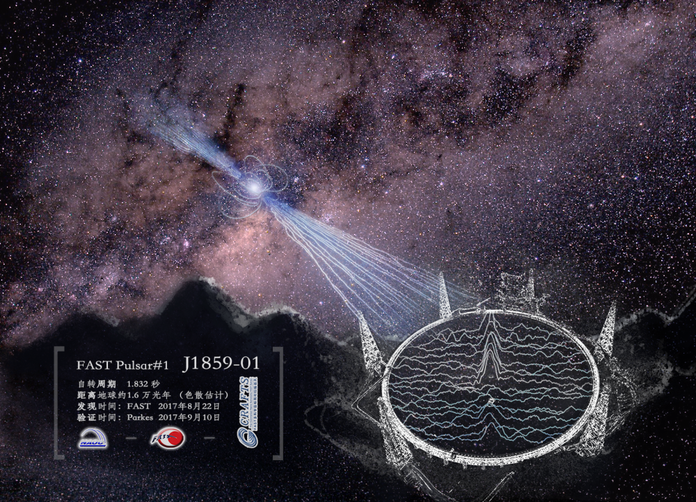 “中国天眼”2017年10月10日对外宣布新发现的1号脉冲星示意图。(中科院国家天文台供图)