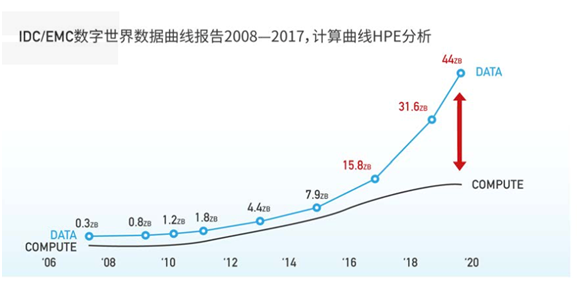 1992年,全人类每天只产生100GB数据;今天全球70亿人,每人每天产生的数据高达1.5GB,仅一辆自动驾驶汽车,一天就能产生64TB数据,足以填满32块硬盘。据IDC和EMC统计,近10年来全球算力的增长明显滞后于数据的增长。