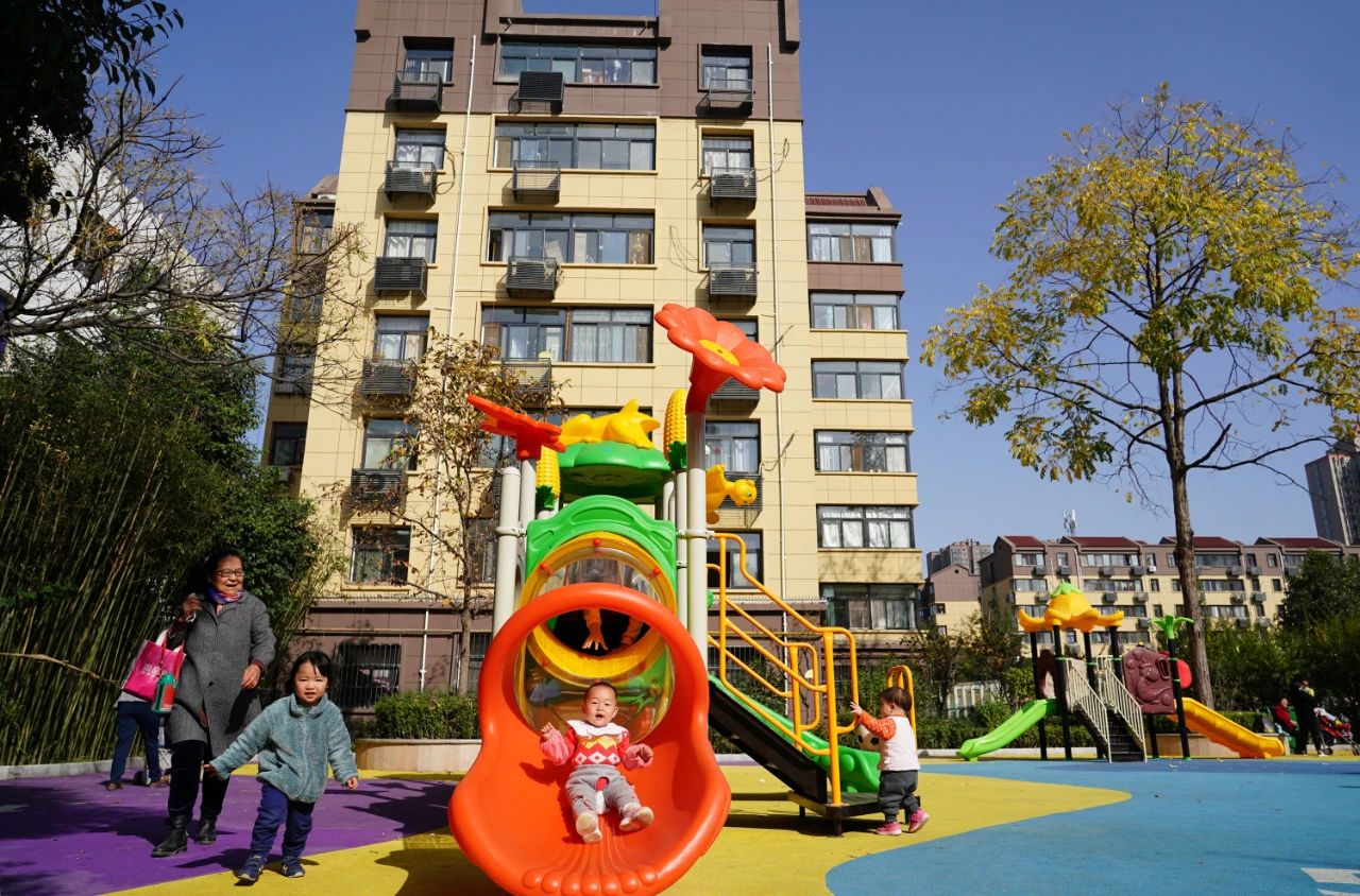 小朋友在西安一老旧小区改造后的儿童广场玩耍 邵瑞 摄