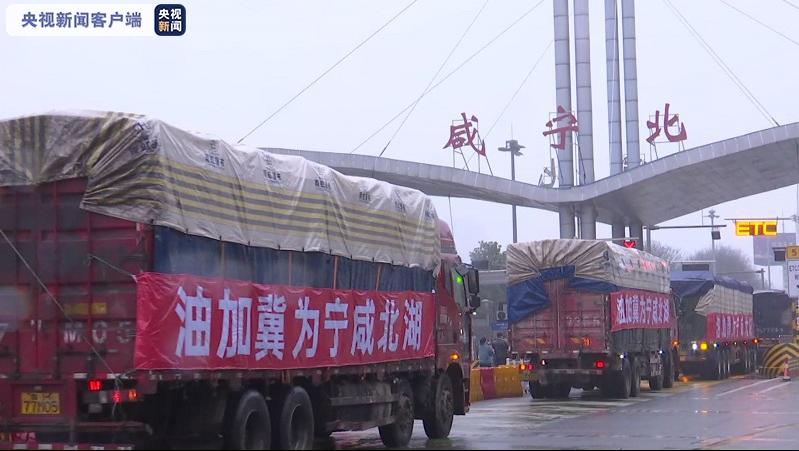 1月25日上午,在京港澳高速咸宁北出入口,运送物资的41辆专车集结出发。这批物资包括医疗设备及防护物资90余万件、蔬菜500吨、咸宁特产及相关库存物资9000余件,总价值2000余万元,将对口支援河北石家庄、邢台、秦皇岛、衡水、保定五市。
