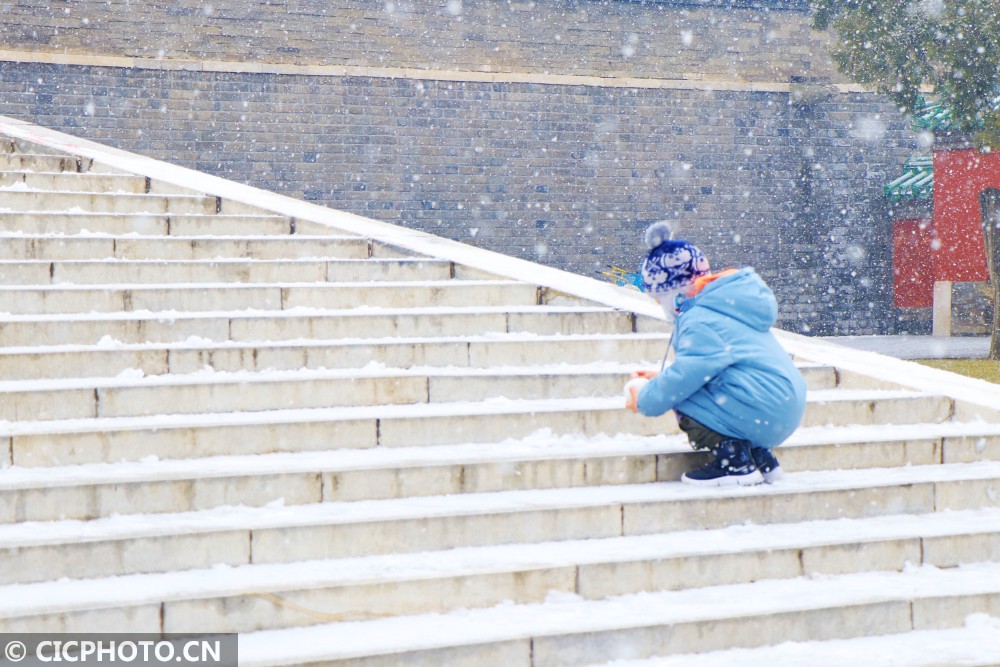 2021年1月25日,北京城区再迎降雪,这是进入2021年以来城区的第二次普遍降雪。东城区天坛公园漫天雪花,雪中美景吸引了市民和游客前来游览、拍照。