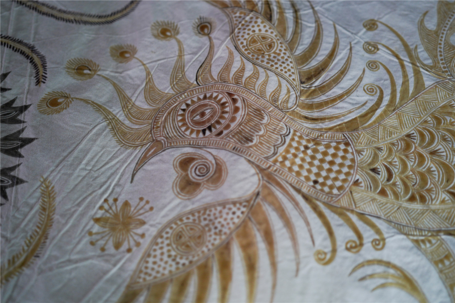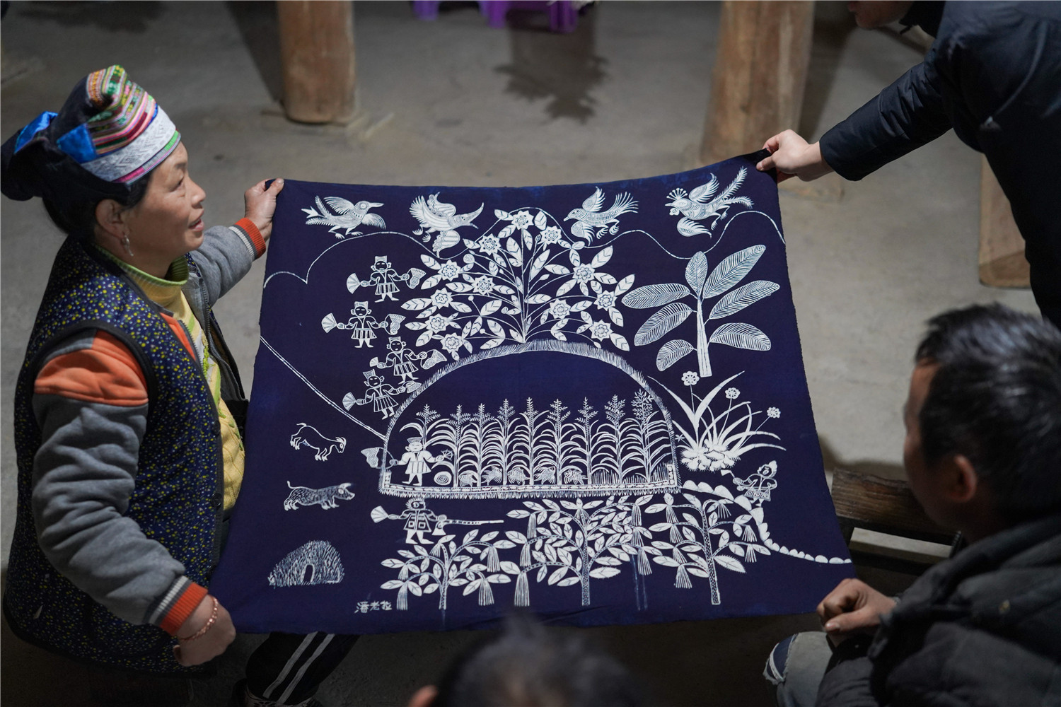 这是摆贝村妇女潘老拉即将完成的一件蜡染作品(1月7日摄)。新华社发(贺俊怡 摄)
