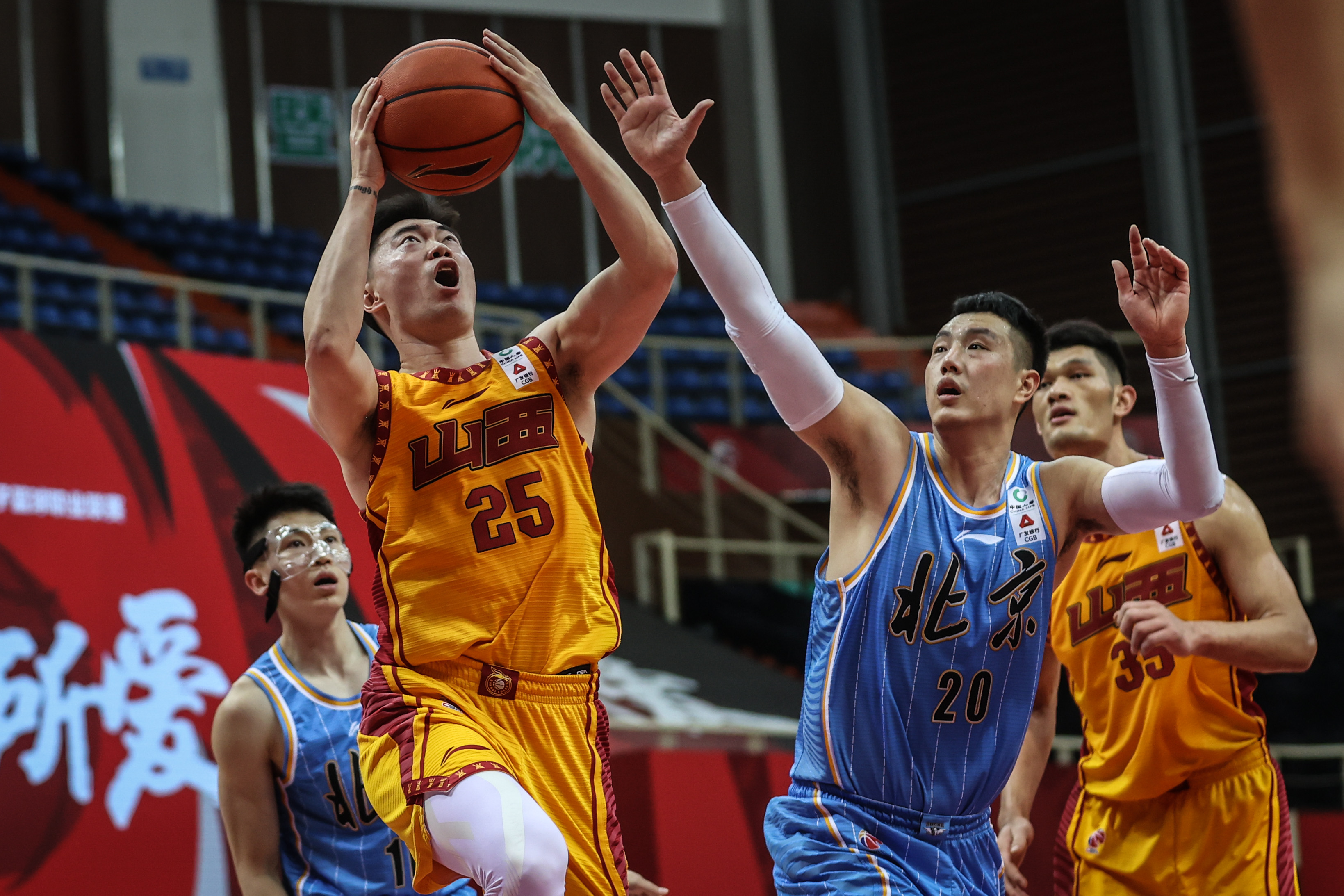 山西队球员张涵钧(左二)上篮。新华社记者潘昱龙摄