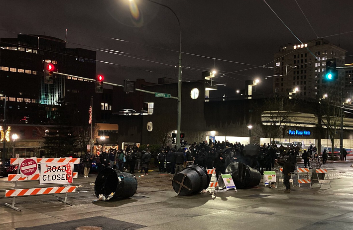 据媒体报道,至少有两辆警车在骚乱中受损,一些城市建筑物紧急撤离人员。抗议者们身穿全黑衣服,举着反法西斯行动旗帜走上街头,还有部分人试图破坏当地皮尔斯县监狱的大门,高呼“释放所有囚犯”。