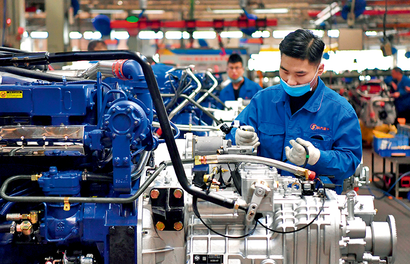工人在位于西安的陕汽总装车间生产线上作业(2020年11月2日摄) 刘潇摄/本刊