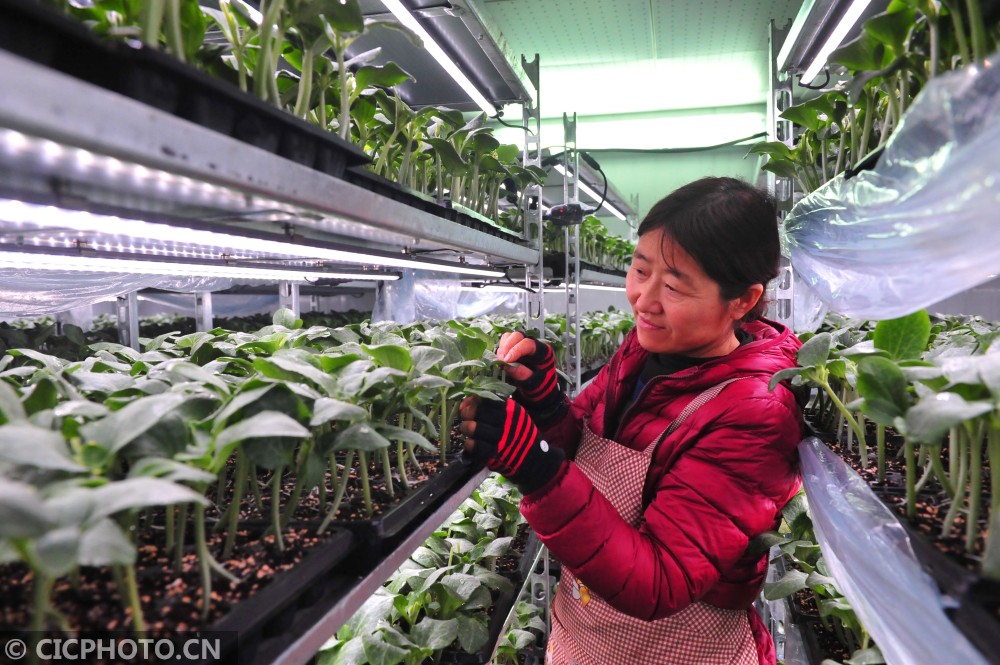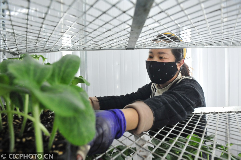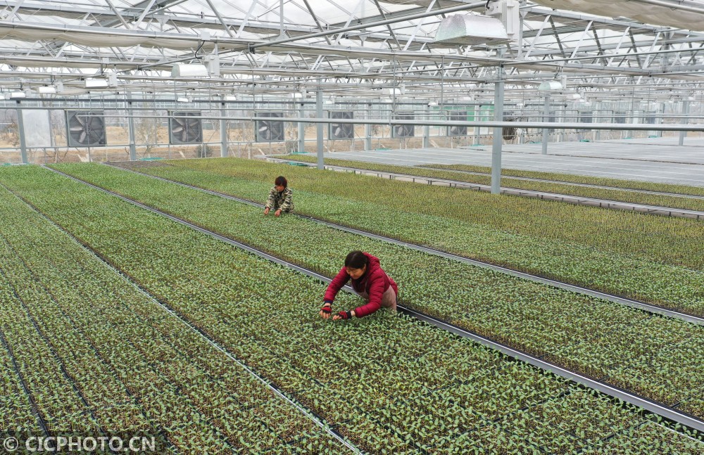 ↑2021年1月24日,江苏省徐州市睢宁县一农业科技企业的工人在管理瓜苗床。CICPHOTO/洪星 摄