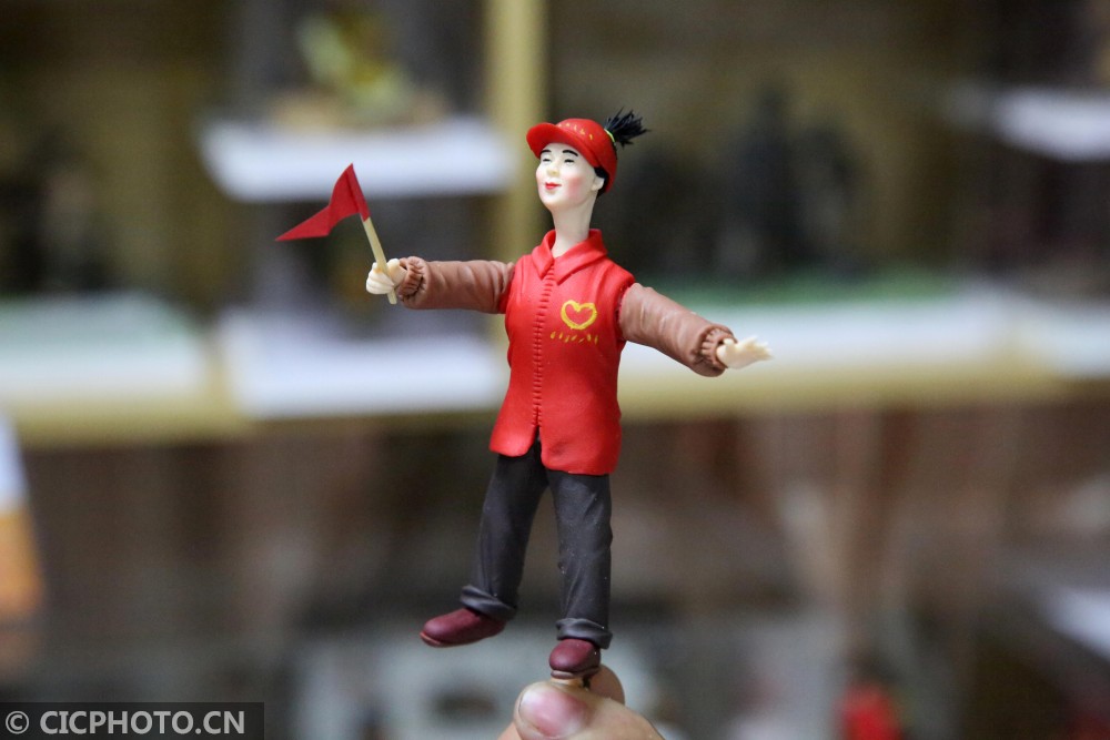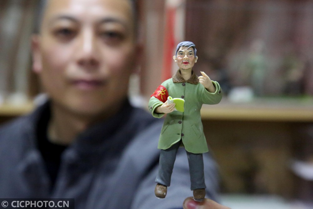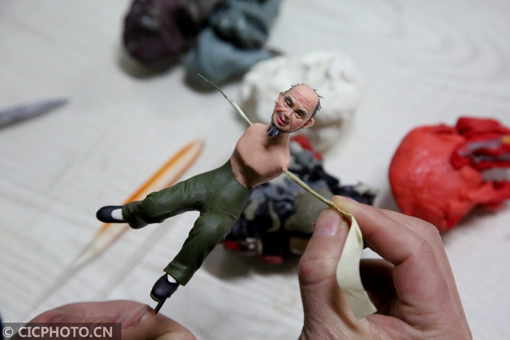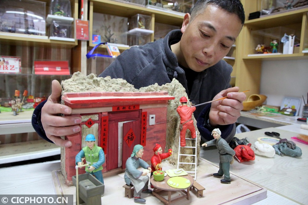 ↑2021年1月25日,江苏省连云港市,孙连东在制作扶贫题材面塑作品。CICPHOTO/邵世新 摄