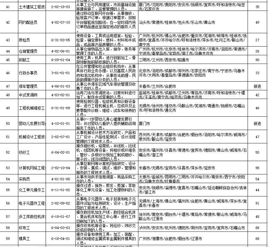此外,排行“前十”职业基本保持稳定,本期“焊工”进入前十,“快递员”退出“前十”。(完)