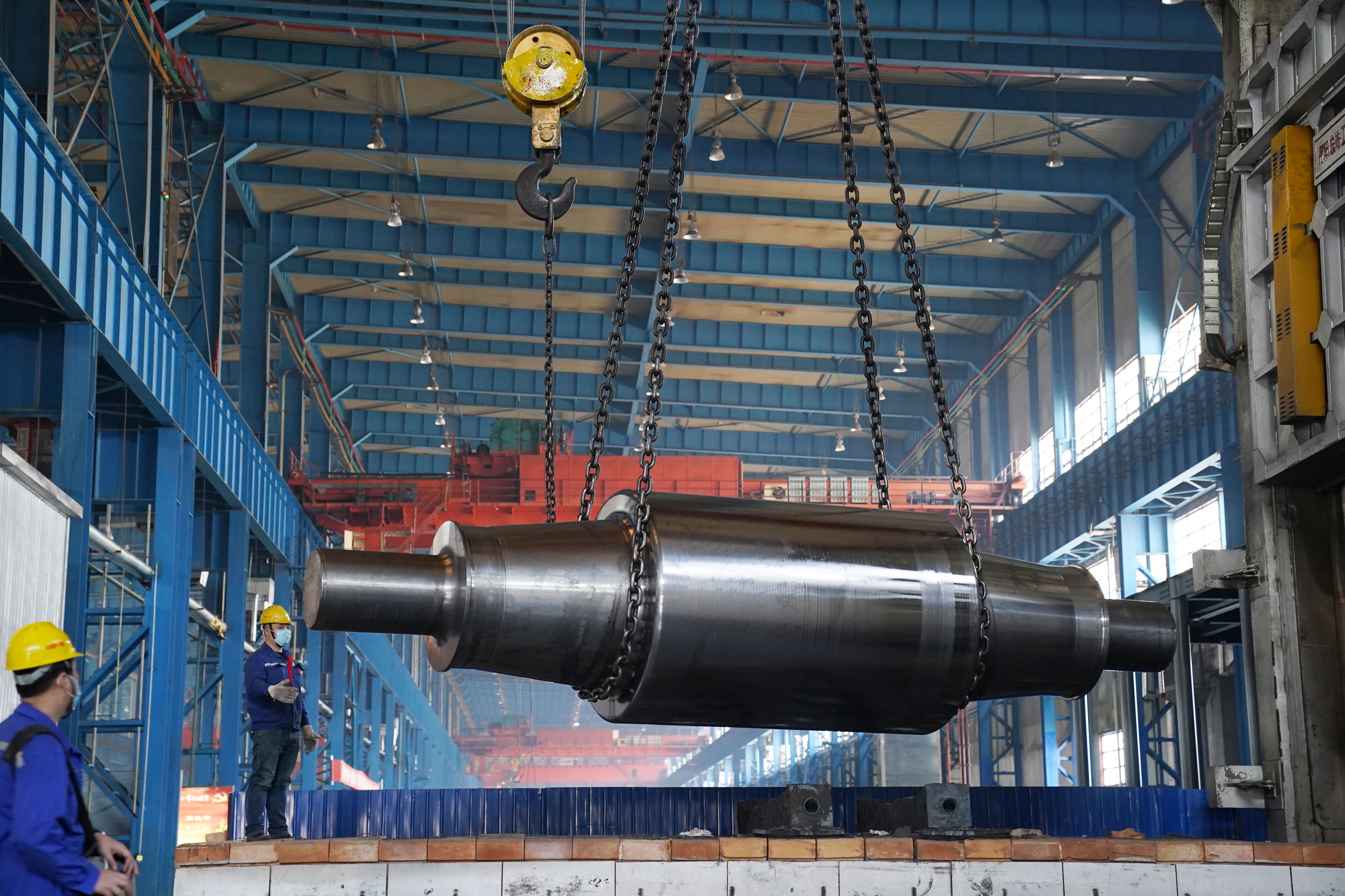 在中国一重生产车间,工人在进行作业。新华社记者王建威摄
