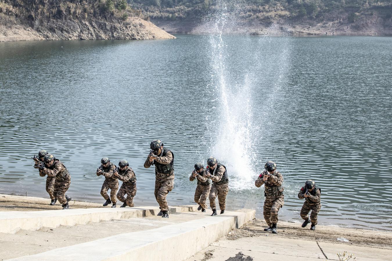 反恐演练中,特战队员快速追击目标