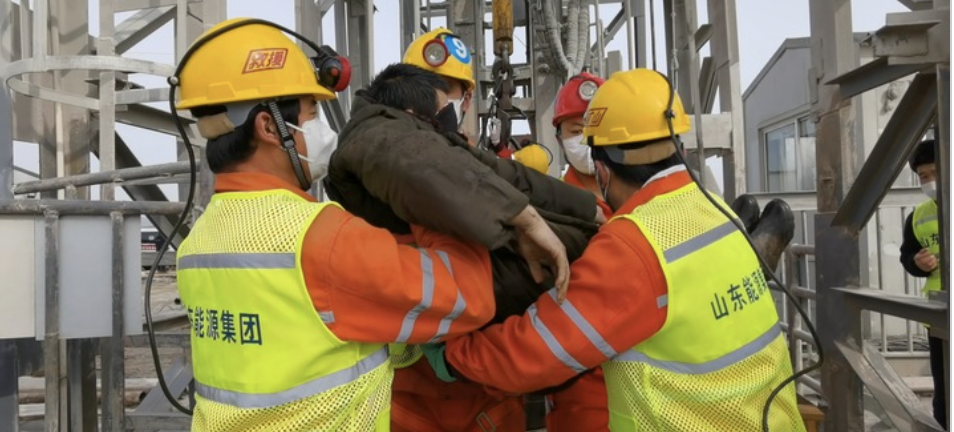 被困矿工陆续升井获救,2021年1月24日 ,新华社记者 陈灏 摄